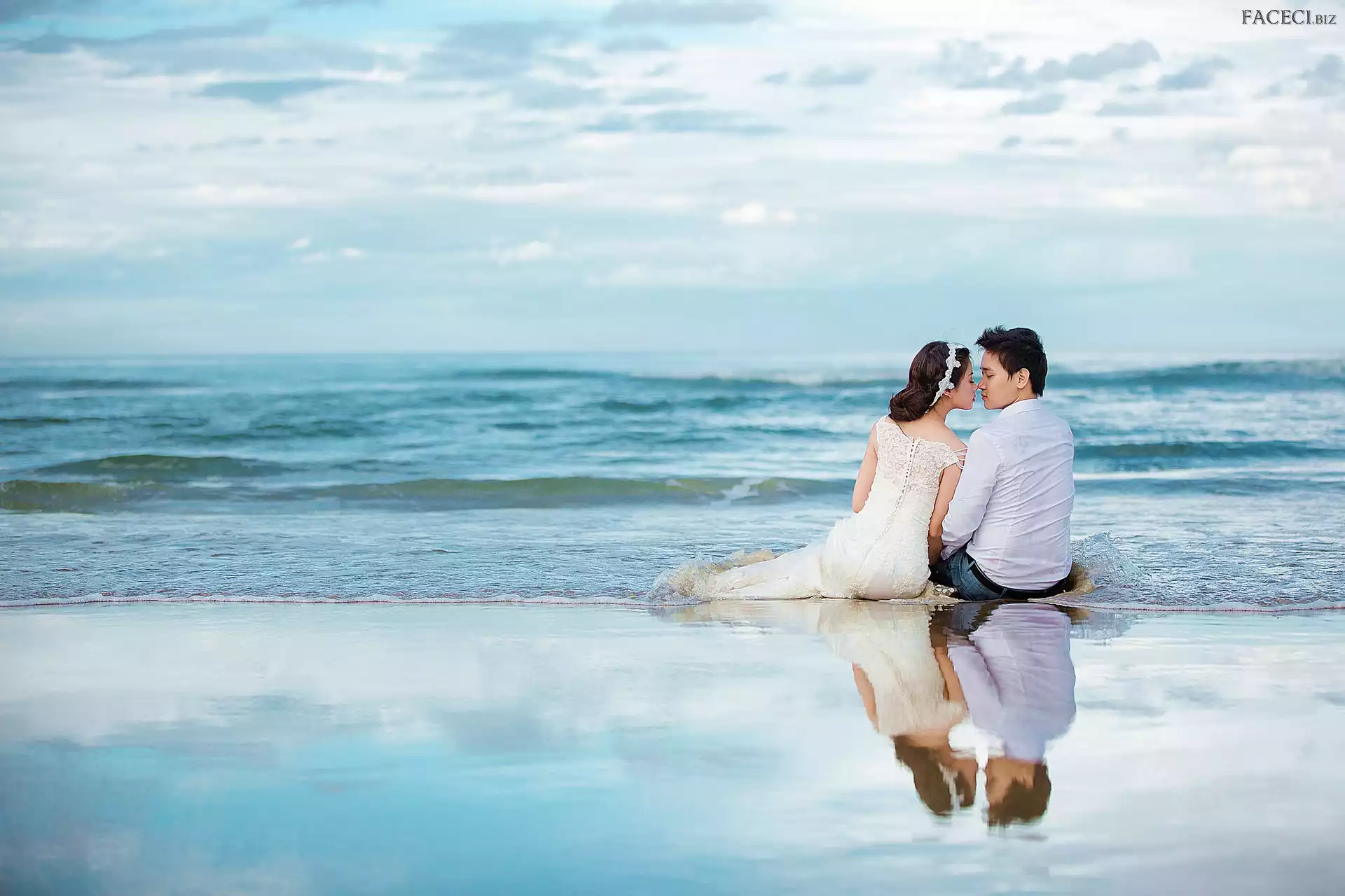Para młoda, Pocałunek, Ślub, Morze - faceci.biz